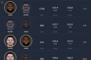 媒体人Jacob分享了一组詹姆斯和上赛季同场与否的净效率对比。